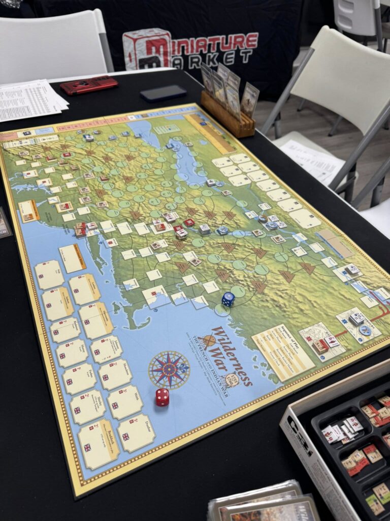 Wilderness War focuses on the conflict of The Seven Years War or as it was known in our neighborhood, The French and Indian War. The fallout of actions in this war had direct and indirect consequences on the North American continent just a few years later as the British Colonies struck out on their own. Two games of Wilderness War were played, the first with a British Victory after the French got out a bit too far ahead of themselves and a second with much more even results.
