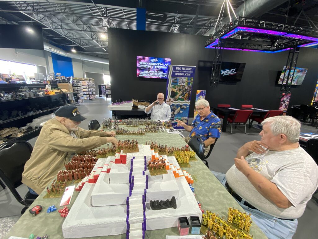 Overall a game that ended up as a judge declared draw (but most likely an Aztec victory), but really a win for all the players as we had a great time pounding away at each other this October afternoon. Thanks to Steve for a fun filled game that all the players enjoyed. We also extend a Thank You to Impact Game Center in Fairview Heights for their continued support.