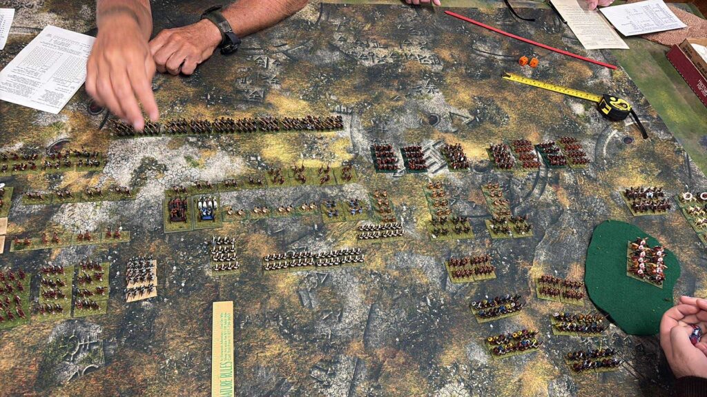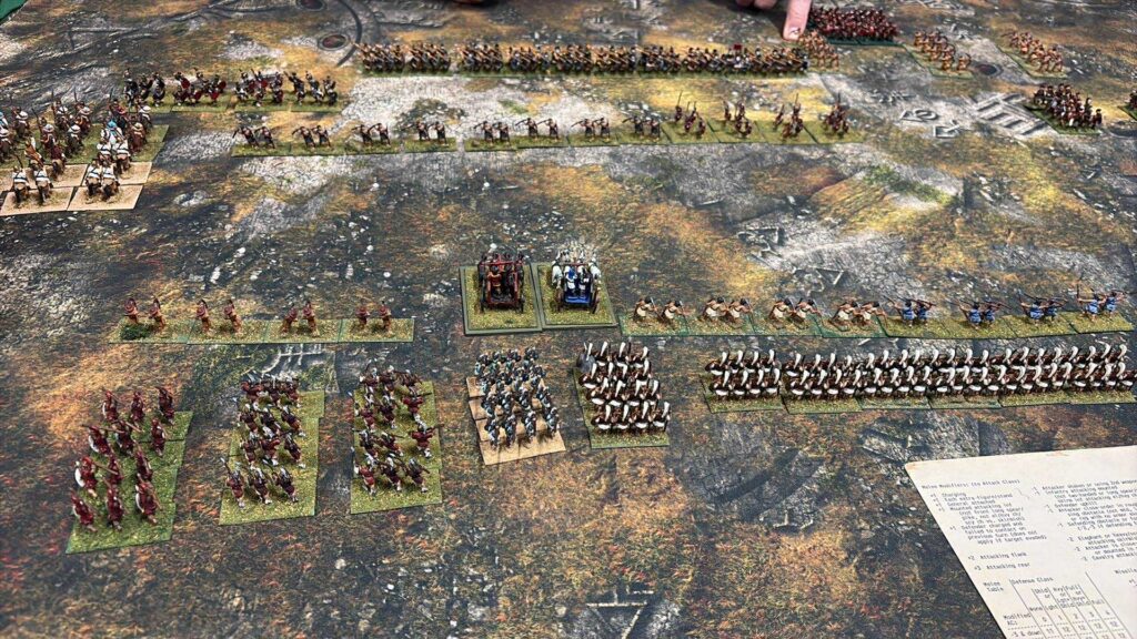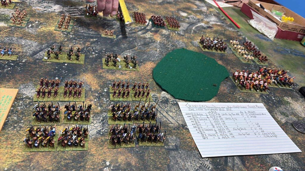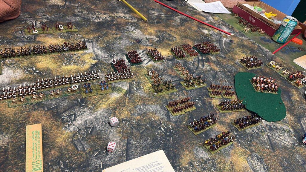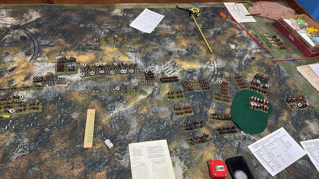 The troops mustered in and the players took their places at Game Nite as Tuesday Night Gaming headed to the Ancient World in a clash of Greeks Vs Rome in 15mm using “Clash” game rules.