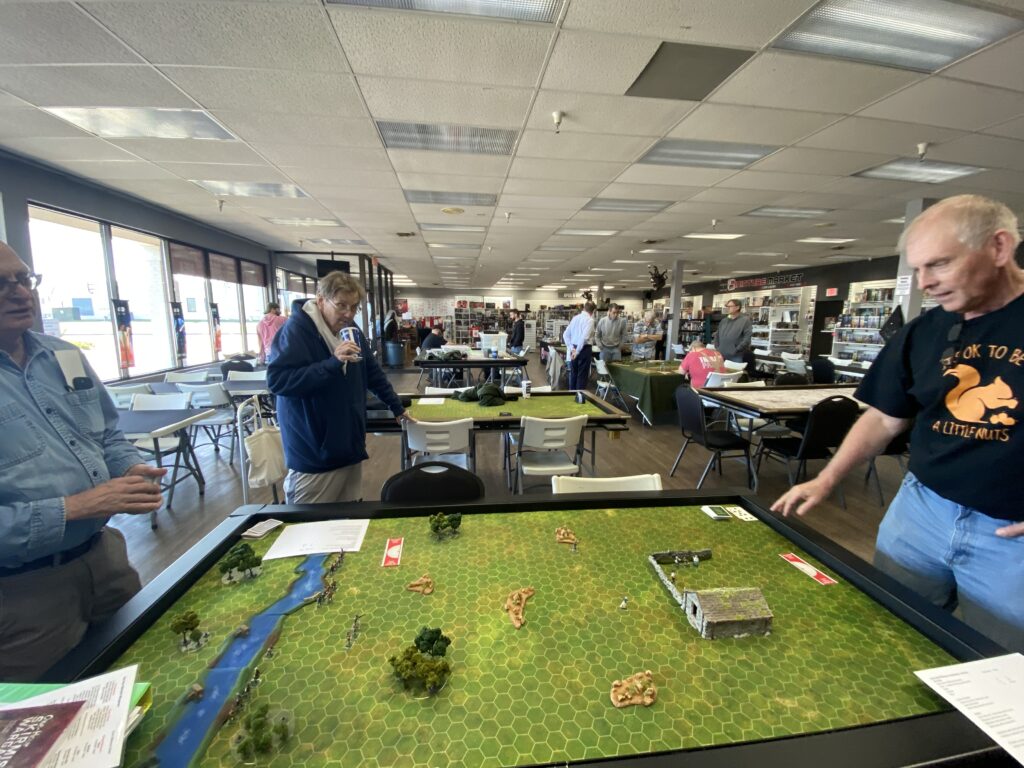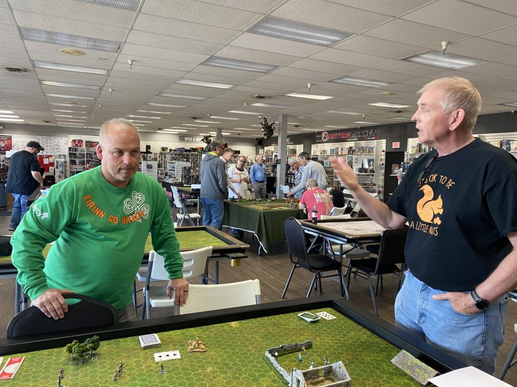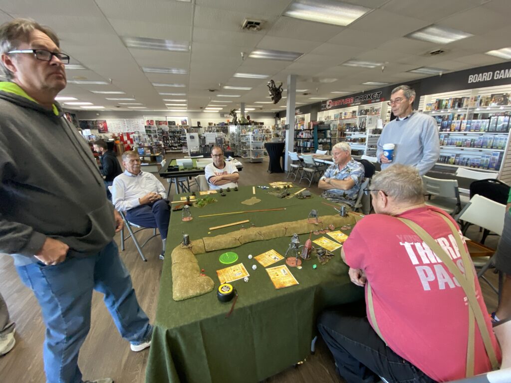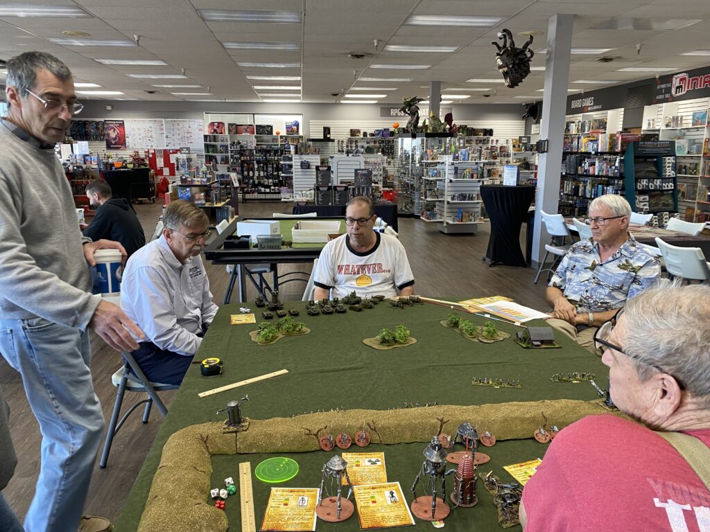 First up was a team effort by Greg Dieckhaus & Pat Lewis as they presented an “All Quiet on The Martian Front” scenario. This popular game system filled up quickly with players Steve T, Steve L, Jules R and Mark J.