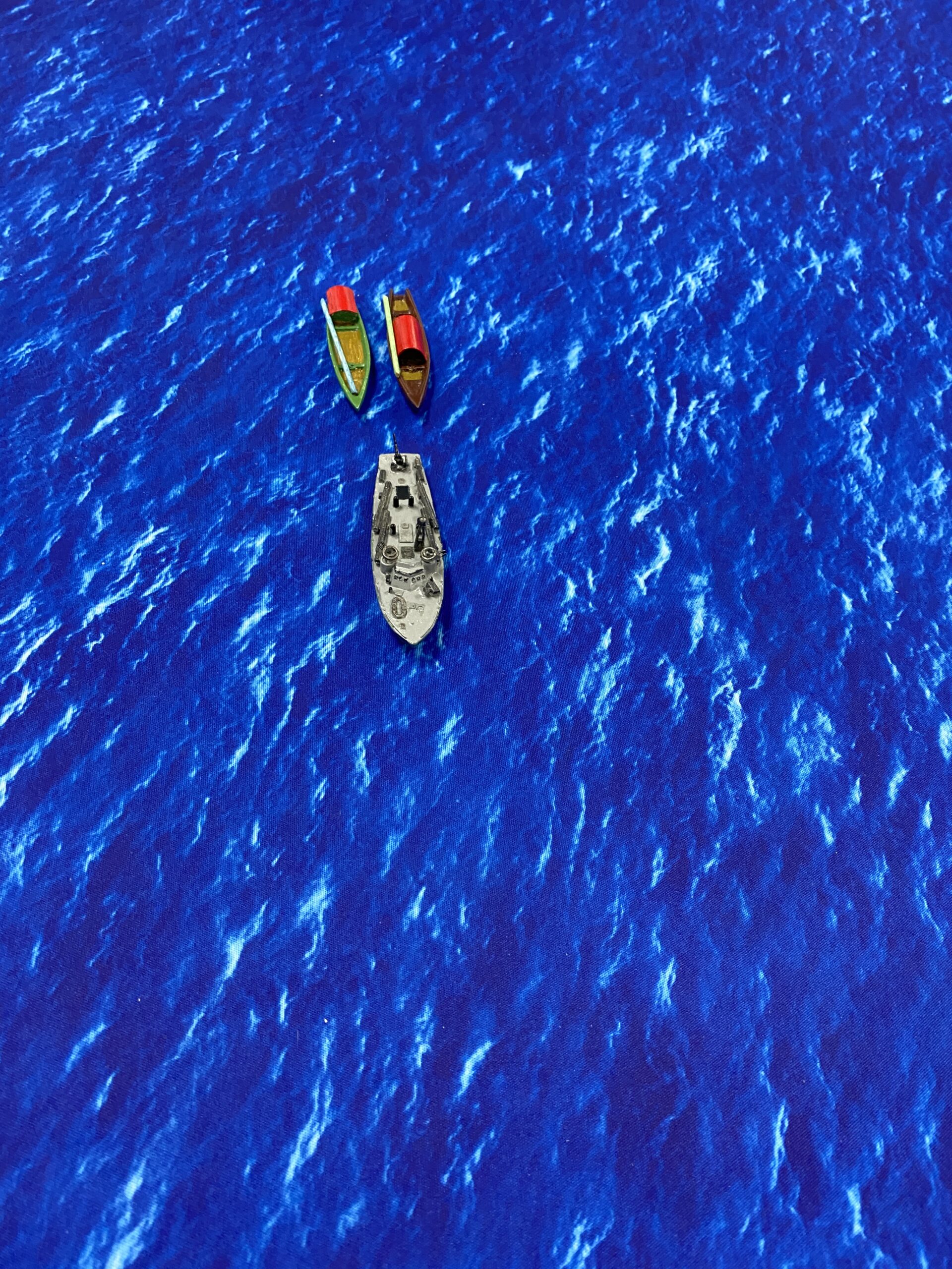 We broke out “Cruel Seas” and a few Elco PT Boats for a nighttime run against some Japanese supply barges making their way down the Slot hoping to avoid interception and deliver their cargo of badly needed ammunition and food to the Imperial Army on Guadalcanal. Weather conditions were fairly calm seas but and ink black night.