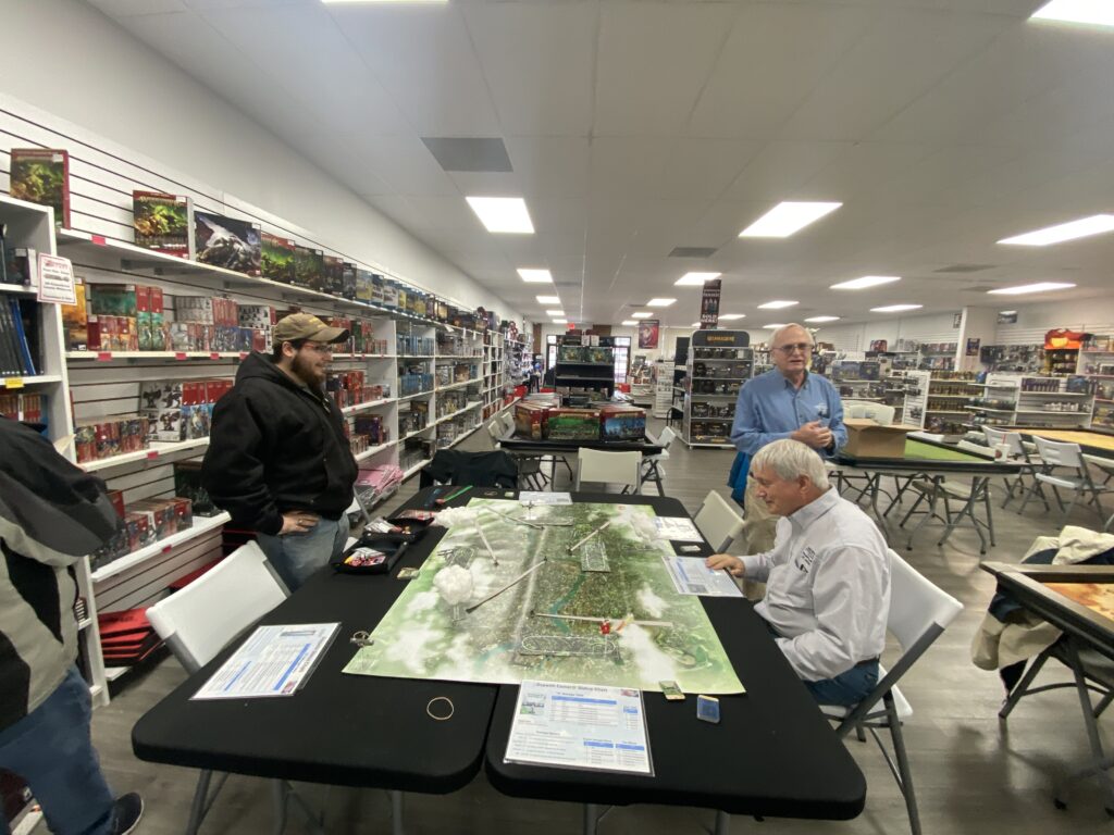 Once the Zeppelin was spotted players switched to using the standard 3 phase movement card system of the game. It was great to see Jules R and Ravi R stop by to visit for our last Retirees Game of 2025.