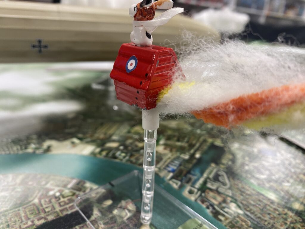 Greg pushed the throttle all the way forward as he could see the flashes of machine guns flickering from the Zeppelin aimed at Snoopy that was already in the fight.