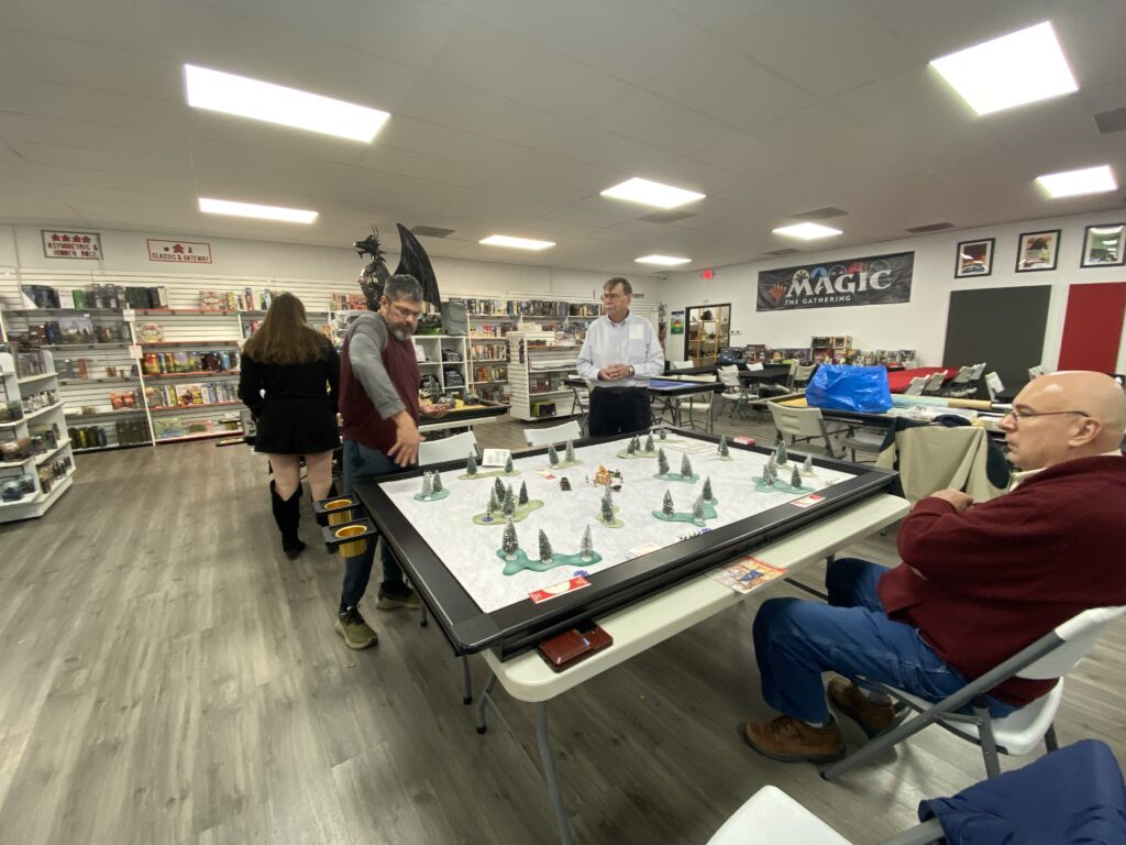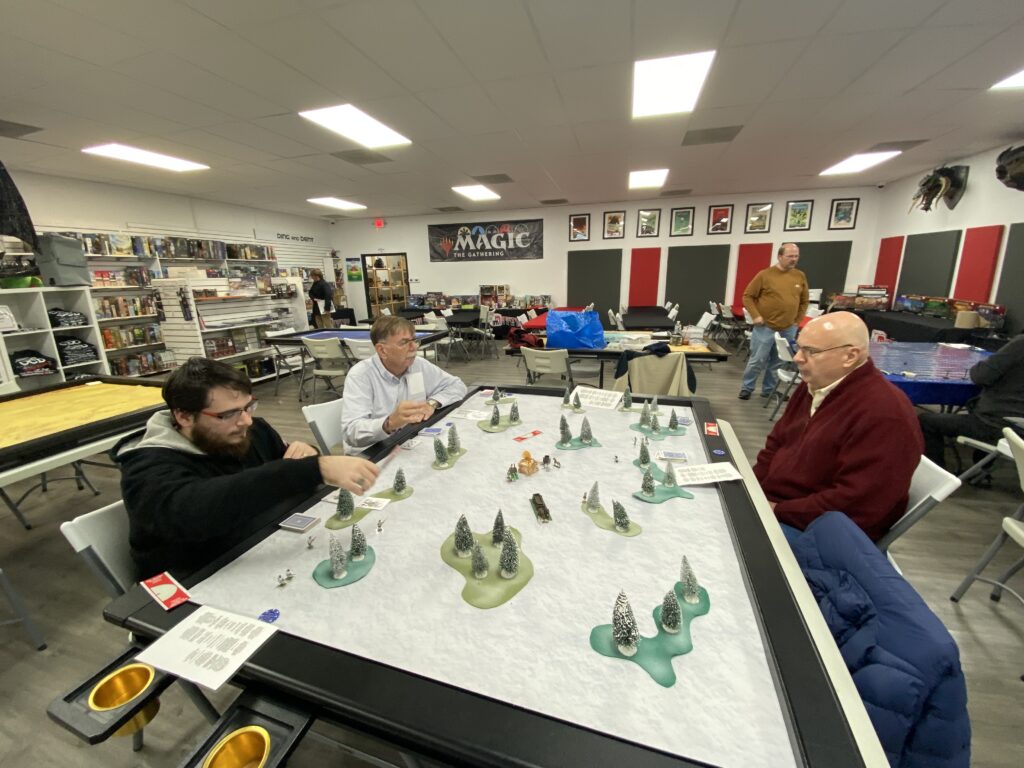 New Year’s Eve arrived along with our last day of our Reindeer Wars 2025 Celebration of Gaming. The crew gathered at Miniature Market Rock Hill for wildly different scenarios and eras. John Nozka put together a great looking table for his Christmas themed Sci Fi adventure using Silent Death rules with Santa Claus in space trying to deliver the presents to the good little girls and boys across the galaxy.