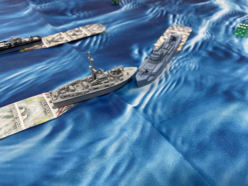 Adding a change of pace, Patrick Connaughton ran a World War II coastal action using our modified Cruel Seas rules. Featuring a striking sea mat and expertly painted miniatures, the game delivered fast-paced action as players attempted either to supply the French Resistance or disrupt those efforts with small-boat engagements.