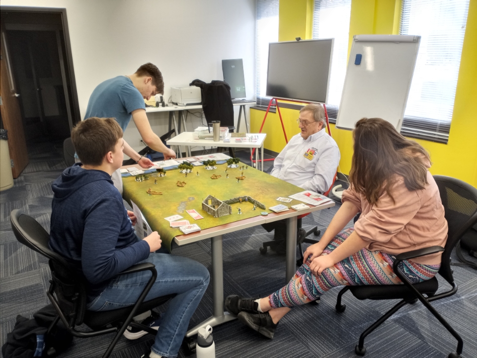 It was a field trip for our Game Masters to present three games for a group of history students from the classes taught by our own Chris Ketcherside at Missouri S&T located in Rolla as part of our “History Through A Different Lens Initiative.” The games were designed to serve as an extra credit opportunity for the students complimenting their course work in their American History Classes. With a mix of gamers and non gamer students attending, our Highly Experienced Game Master/Facilitators (Mark Williams, Pat Lewis and Kevin Fitzpatrick) chose games that not only fit the historical periods requested but were easy to learn allowing the students to jump right into the problem solving process of the scenarios without the need of having participated previously in table top miniature gaming in the past.