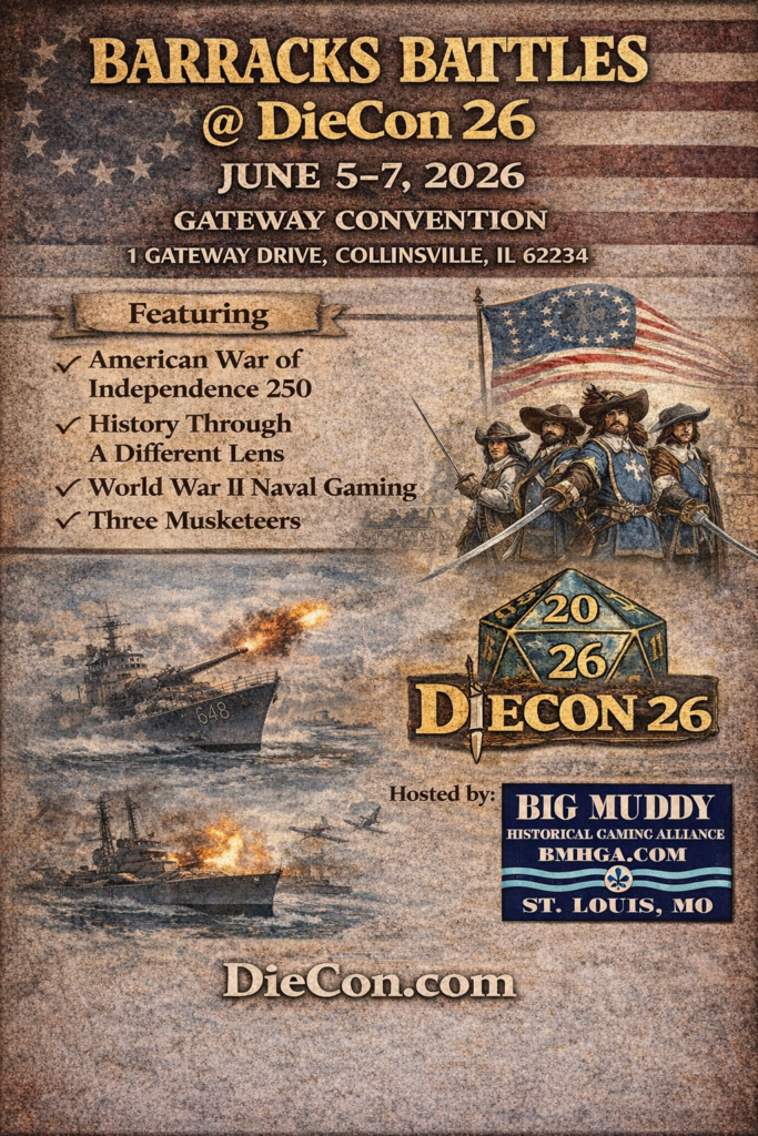 Are you running a game at Barracks Battles@DieCon? It’s time to get it in and scheduled ! Email info@bmhga.com with the title, number of players and description. Slots are filling up!