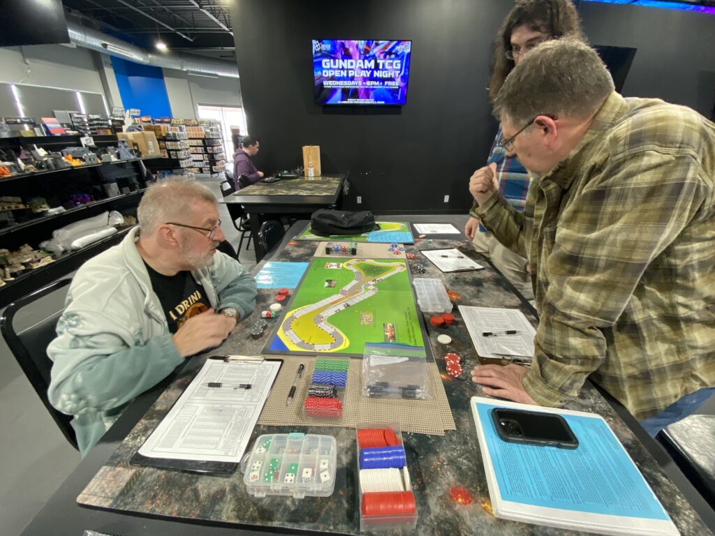 The group gathered at Impact Game Center in Fairview Heights, IL for our March Game Day East featuring Kanju City and Speed Circuit as the offerings for the day.