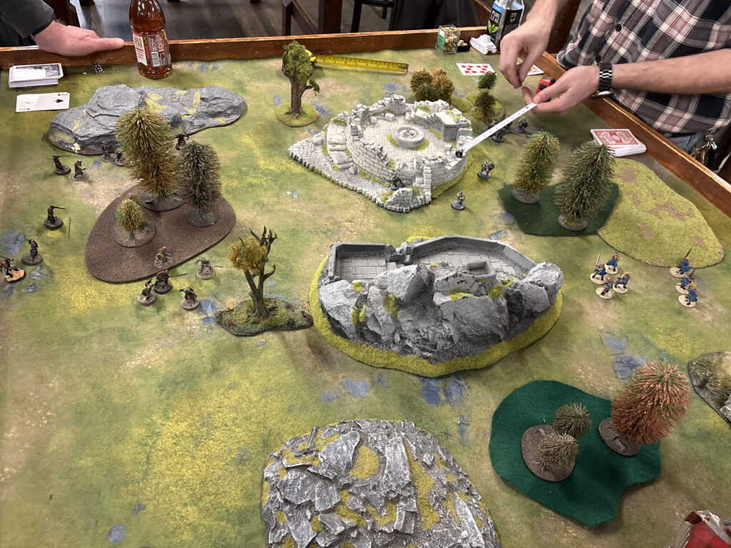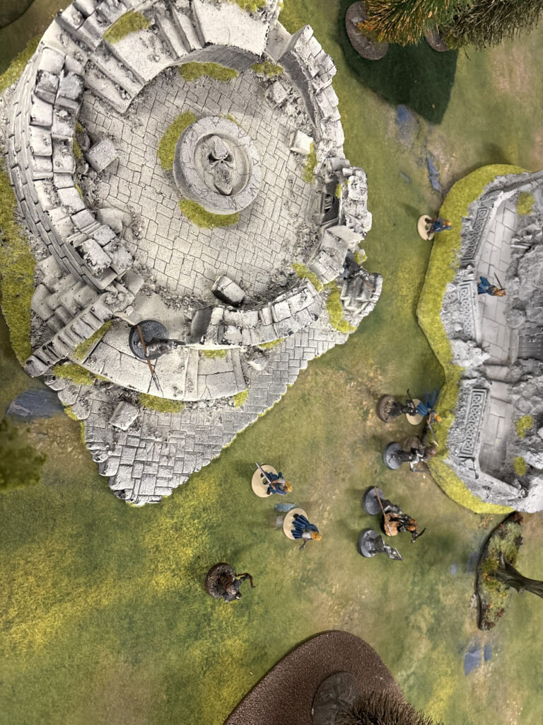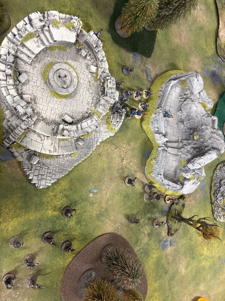 “The men have formed a defensive line between the ruins as the Orcs rush amid a flurry of arrows!”