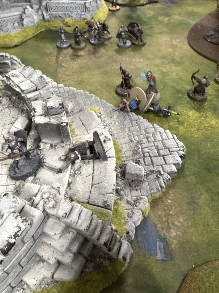 “The battle looks grim for the men of the west as Boromir and a clansman of Lamedon fall, their fates unknown”